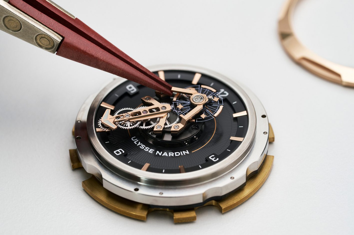 Model je komplikace sama. Technickou raritou je i automatický nátah kalibru UN-240 nazvaný Grinder, který je při použití vychylujících se lamel se závažími schopen nabídnout 2 x vyšší účinnost než běžný samonátah.