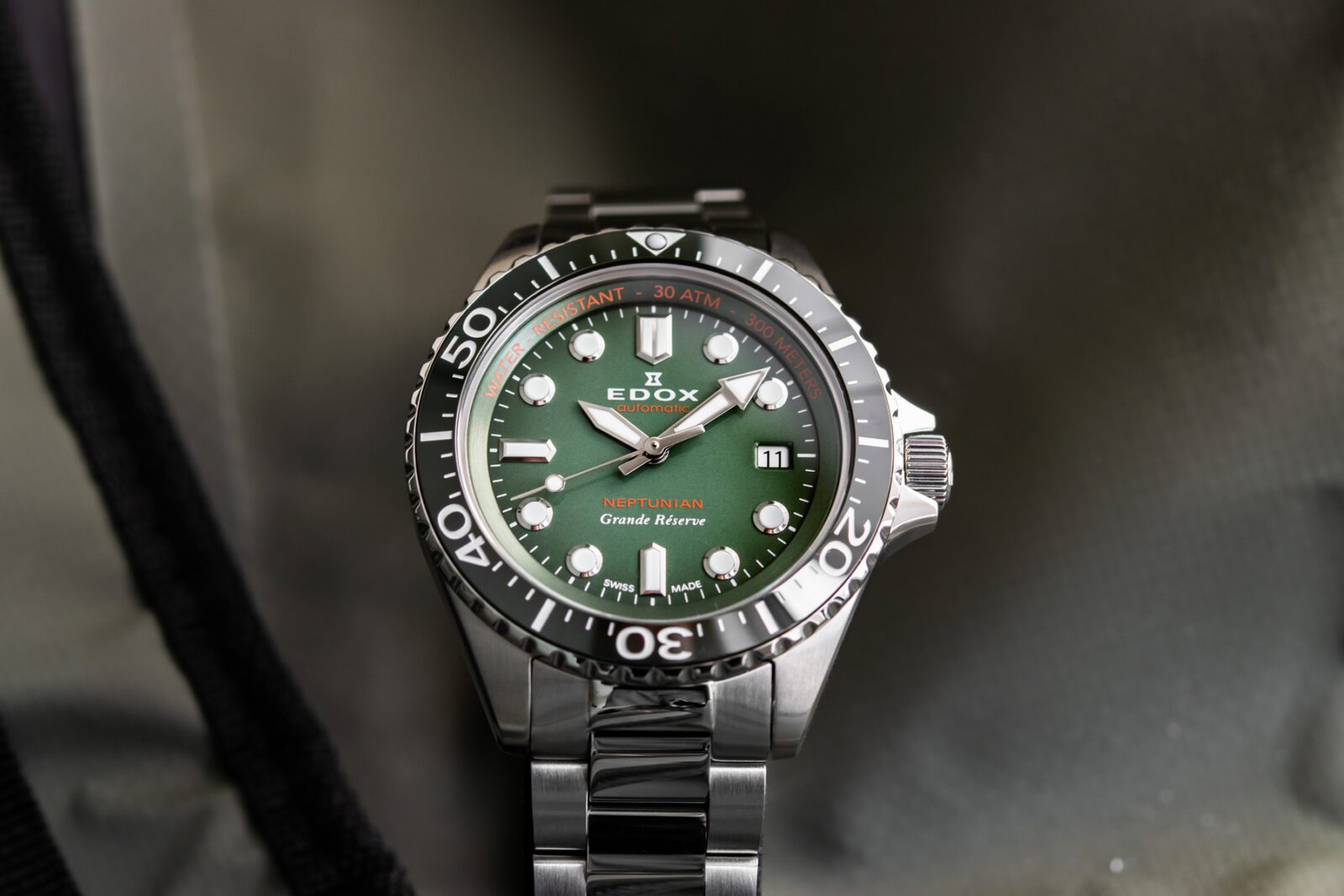 Poctivě hned uvádíme, že titulek není náš, ale tak se nám líbil, že jsme ho v překladu z angličtiny převzali. Je vtipný a pravdivý. To, co nabízí nový Edox Neptunian Grande Reserve, se skutečně dá shrnout do oné jediné věty: jde o voděodolné hodinky, které stejně tak odolají víkendu, který proleží na polici, a to díky své zvýšené rezervě chodu.