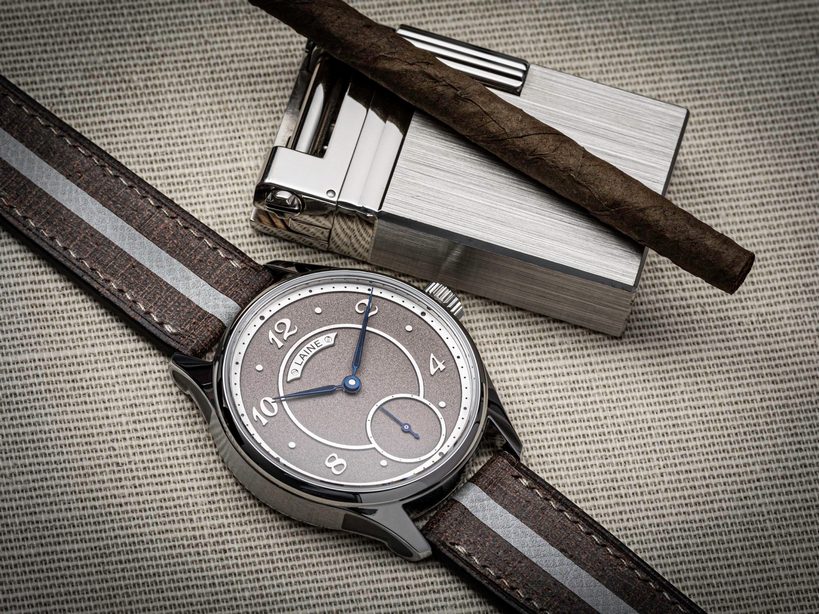 I když od okamžiku, kdy založil ve švýcarském Le Locle svůj vlastní ateliér v roce 2009, uběhlo jen 12 let, už se celkem podílel na 16 projektech. V současnosti pak nabízí 4 modely z řady Gelidus, což v latině znamená – mrazivý. Na druhé generaci, tedy Gelidus 2 je pak postaven kus Silver Spur s pouzdrem z oceli o průměru 40,5 nebo 42,5 mm. Co osloví na první pohled je povrch číselníku vytvořeného z tak zvaného německého stříbra, tedy alpaky z mědi, niklu a zinku i dalších kovů. Pro svůj vzhled podobný stříbru je to velmi přitažlivý materiál. Fin nabízí i verzi s neošetřeným povrchem, který s časem získá zajímavou patinu. Číslovky na číselníku jsou z bílého zlata, mečové ručky z modřené oceli se skrytou Super-LumiNovou.