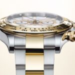 V podobném odstínu, a to povlaku rutheniem, je potažena základna a další díly kalibru C.6001 (vznikl za spolupráce s La Joux-Perret v roce 2023), který vidíte skrze sklíčko v dýnku. K tomu přidal producent malý fígl. Rotor se čtveřicí ramen si mohl dovolit díky zátěžové hmotě po samém obvodu strojku otevřít plochu svého půlkruhu, a tím více otevřít pohled na strojek. Skoro jako by byla řeč o periferním rotoru. Strojek má frekvenci 28 800 polokmitů/h a rezervu chodu 55 hodin.
