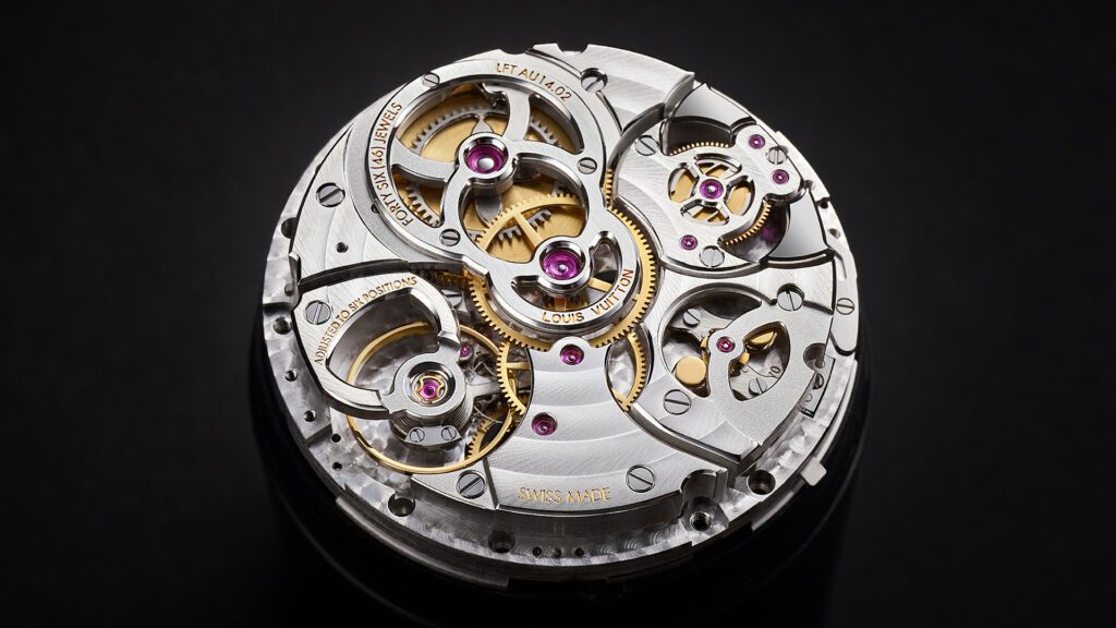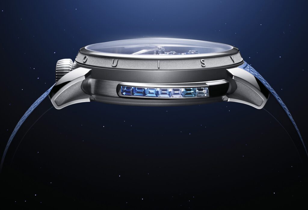 Možná i toho, co je vidět na číselníku, se jednou dočkáme. Totiž, že i kosmonauti budou chtít být na vzdálené planetě šik, a tak jim módní domy jako je třeba Louis Vuitton nabídnou skafandry podle poslední módy. Zatím tento výrobce nabízí hodinky s minutovou repeticí a katedrálními gongy. O obrázek a vtip na číselníku se postarala známá společnost úpravců hodinek LFT. Ani tím vše nekončí. Kalibr AU14.02 z produkce La Fabrique du Temps má celkem 459 dílů (jen montáž strojku trvá 220 hodin) a kromě bití nabízí i pohyb na číselníku. Jde o automaton, který rozpohybuje anténu, solární panel a trysku satelitu. Kosmonaut navíc mává vlajkou a pohybuje levou rukou, jako by vyrovnával pohyb ve stavu beztíže. V pozadí se třpytí padající hvězdy a Slunce se pomalu otáčí. To je scéna! Průměr pouzdra činí 46,7 mm a výška je 14,6 mm. No, není to úsměvné? Přitom jde o vysoké hodinářství.