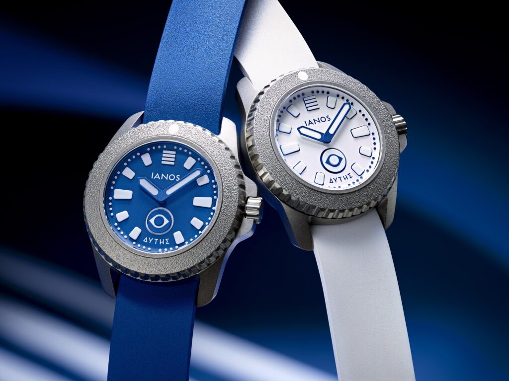Už samotný fakt, že mluvíme o řeckém výrobci časomír je výjimečný. Od roku 2019 uvedl modely Avyssos a Mihanikos, oba spojené s potápěči, kteří na nádech na řeckých ostrovech lovily houby, které používáme jak žínky na mytí. Ani Dytis není výjimkou. Předně barevnost je čistě řecká, tedy s výhradním využitím modré a bílé barvy. Ale zpět k potápění. Indexy mají tvar kamenů kampanelopetra, které upoutané na laně házeli potápěči do vody, aby se rychle s nimi dostali na dno. Místo mimostředné sekundové ručky se na vás dívá mati, v řečtině oko chránící dotyčného před nebezpečím, před zlými duchy. Přesně to, co je pod vodou na místě. Třetí v řadě model Ianos má pouzdro z titanu třídy 2 o průměru 41 mm a výšce 14 mm, s voděodolností 300 m. V pouzdře je Sellita SW360-1 s automatickým nátahem, frekvencí 28 800 polokminů/h a rezervou chodu 42 hodin. Seriózní potápěčské hodinky s jemným nadhledem.