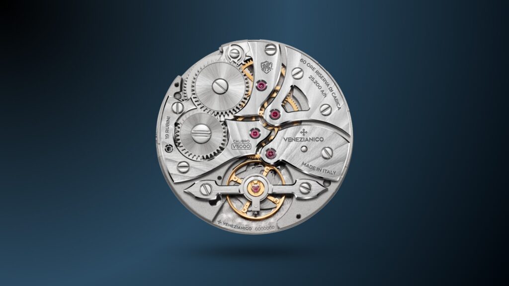 Fausto Berizzi je významnou osobností italského hodinářství, vždyť pracoval ve společnostech Frédéric Piguet, Lemania i Vaucher Manufacture na stavbě mechanických kalibrů. Další postavou onoho italského vzkříšení mechaniky se stal Andreo Menegazzi, vedoucí společnosti zabývající se produktovým designem a vývojem. „Společně jsme vdechli život calibru V5000 – našemu prvnímu kalibru navrženému, registrovanému a vyrobenému v Itálii (patent číslo 402025000000420),“ vysvětluje Alberto Morelli.