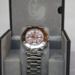 K oběma velkým a výborně čitelným oknům dne a měsíce se výborně hodí skákající hodiny na pozici 12 doplněné o ručkové zobrazení minut a sekund. To všechno jasně mluví o značně komplikovaném strojku Calibre 595 (průměr 30 mm a výška 5,95 mm, podle poslední hodnoty je kalibr pojmenován) s celkem 476 komponenty, a navíc rezervou chodu 100 hodin. Jeho základna i můstek jsou z 18k zlata.