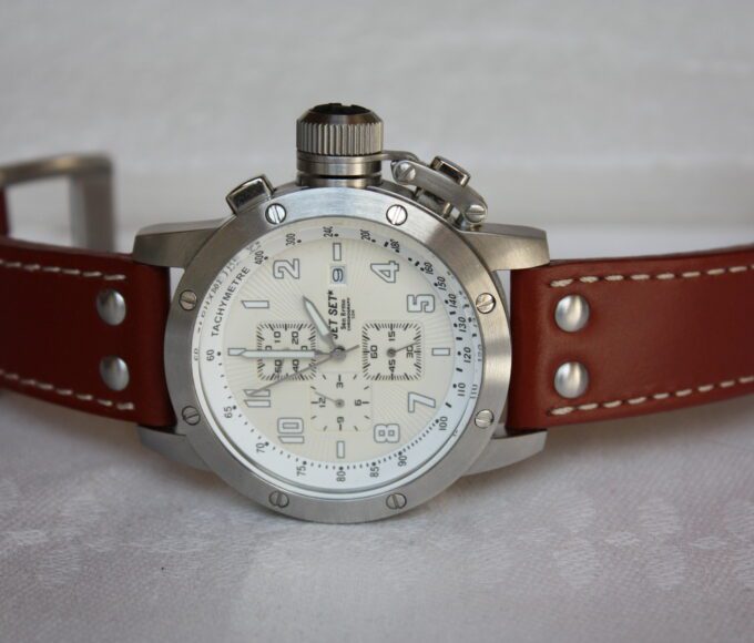 Značka: Jet Set Model: San Remo Chronograph Charakteristika: Quartzové hodinky s chronografem a trojicí sčítačů, doplněných o zobrazení data na pozici 3. Sklíčko je...