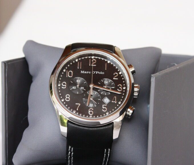 Značka: Marc O´Polo Model: Gents ref.č. 4202701 Charakteristika: Quartzové hodinky švédské produkce, s leštěným ocelovým pouzdrem a korunkou s gravírováním a dvěma tlačítky chronografu. Chronograf...