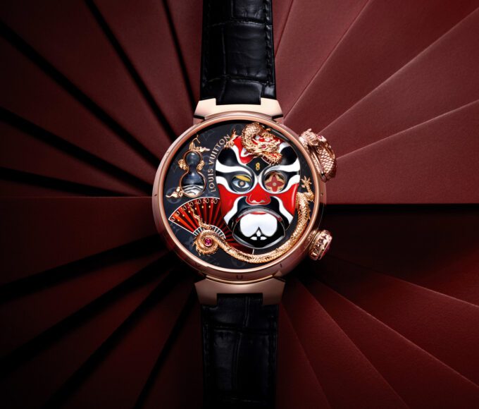 Zvedne se hlava čínského draka a odhalí na číselníku okno skákajících hodin, které se nachází uprostřed obočí masky sečuánského divadla Bian Lian. Zároveň...