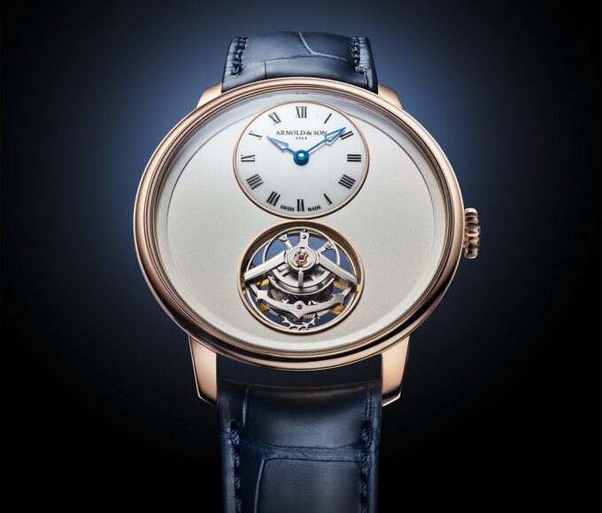 Kouzelný mistrovský kus v růžovém zlatě s jemným stříbrným opálovým velkým číselníkem a menším perleťovým. Video a foto: Watches and Wonders Arnold &...